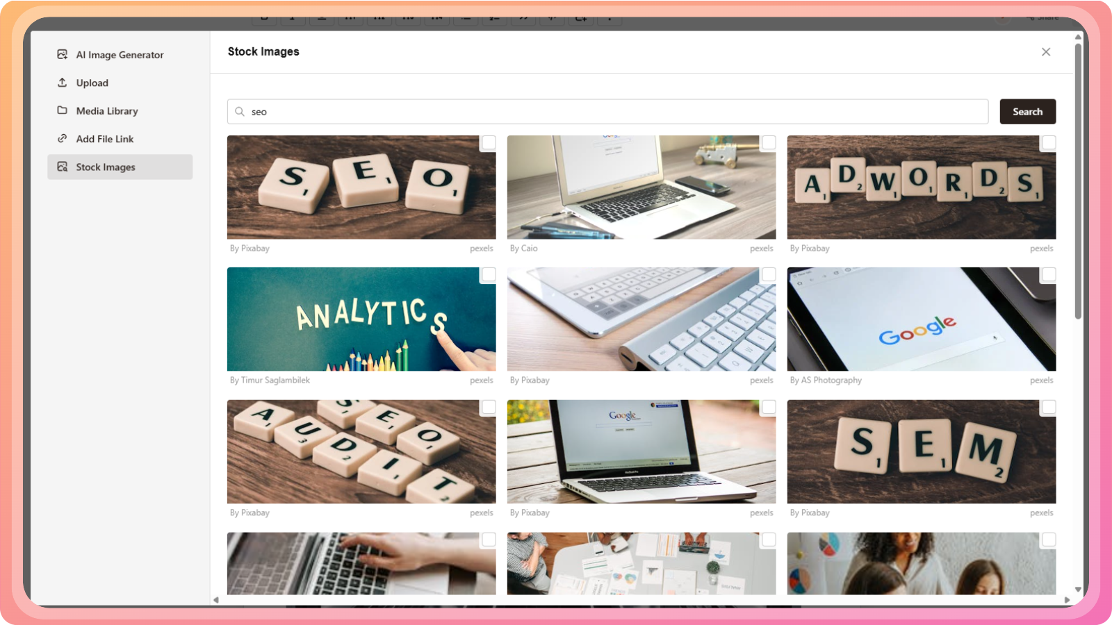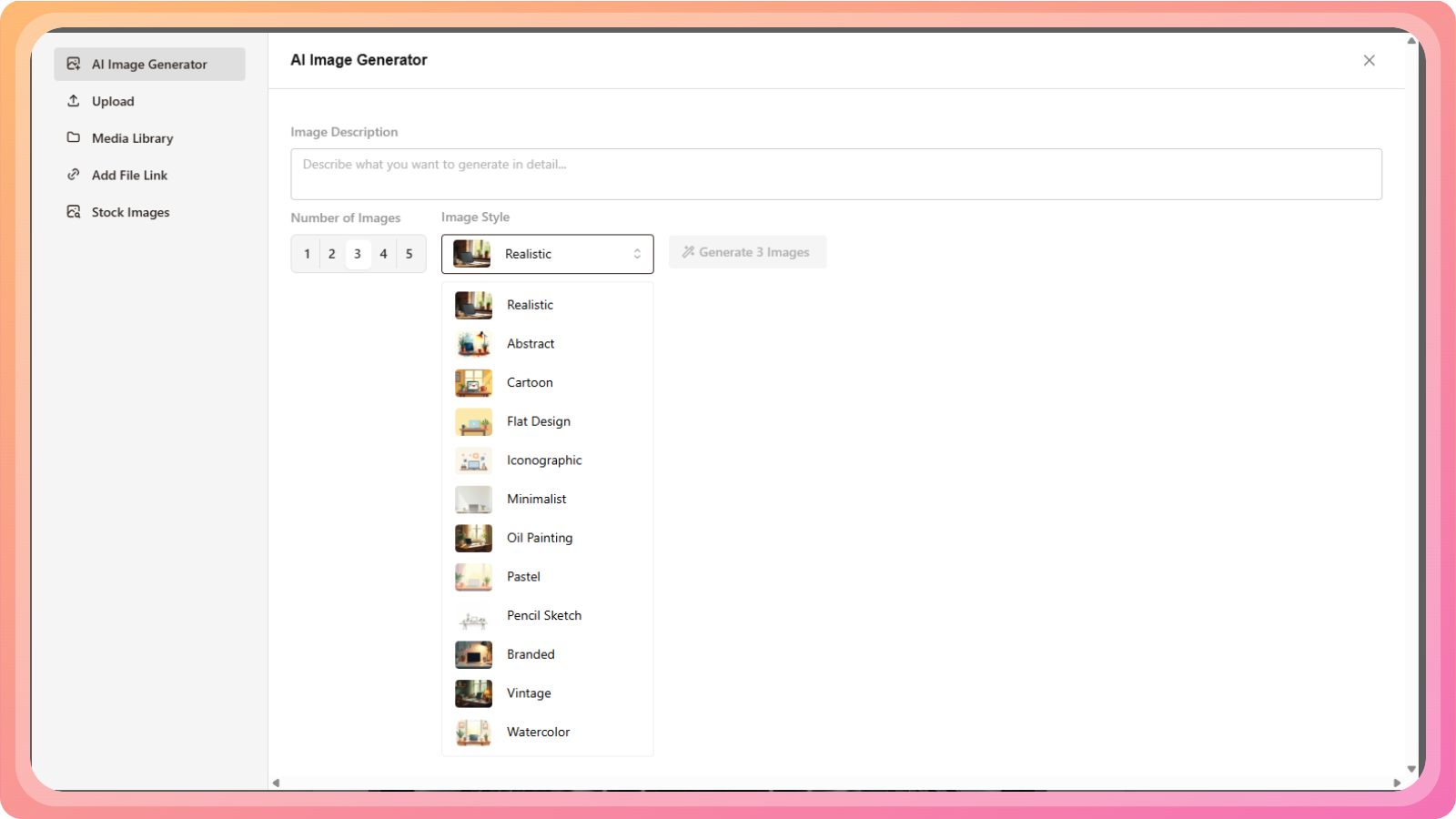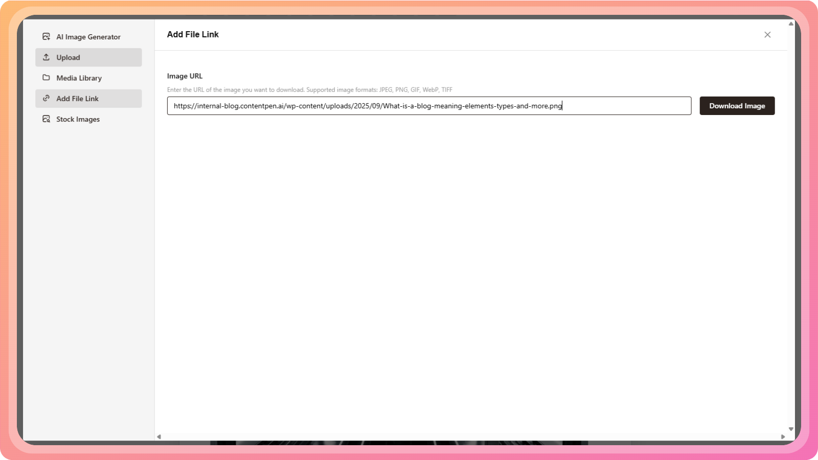 Use the Contentpen media library (previous uploads or AI-generated images)