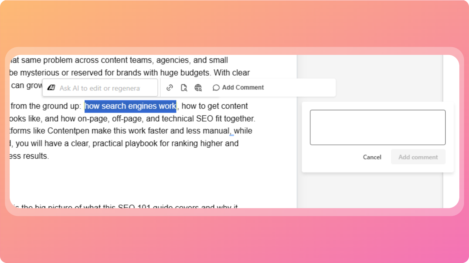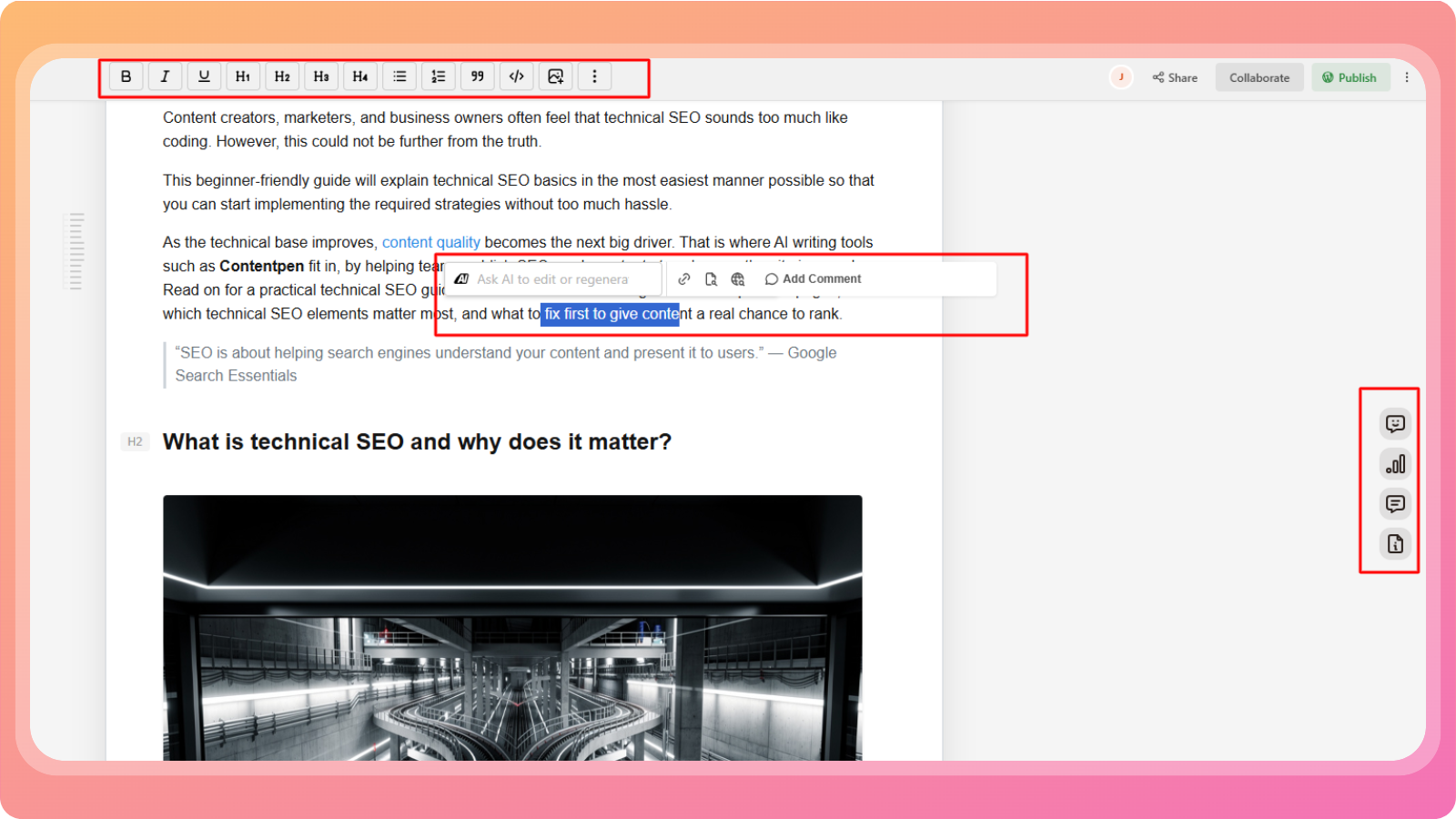 Editing with AI inside the content