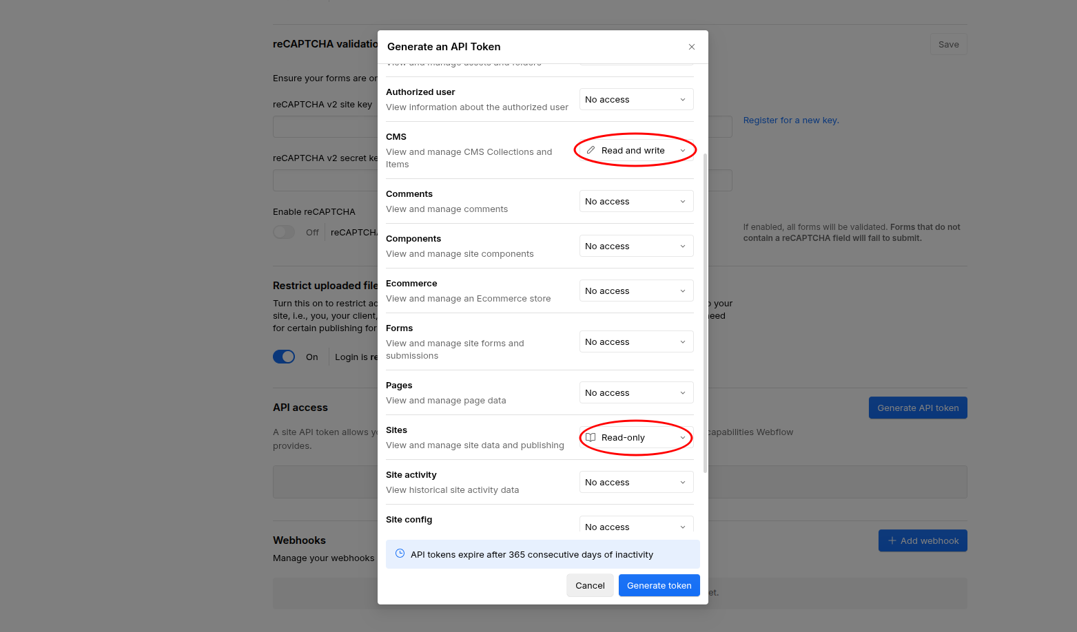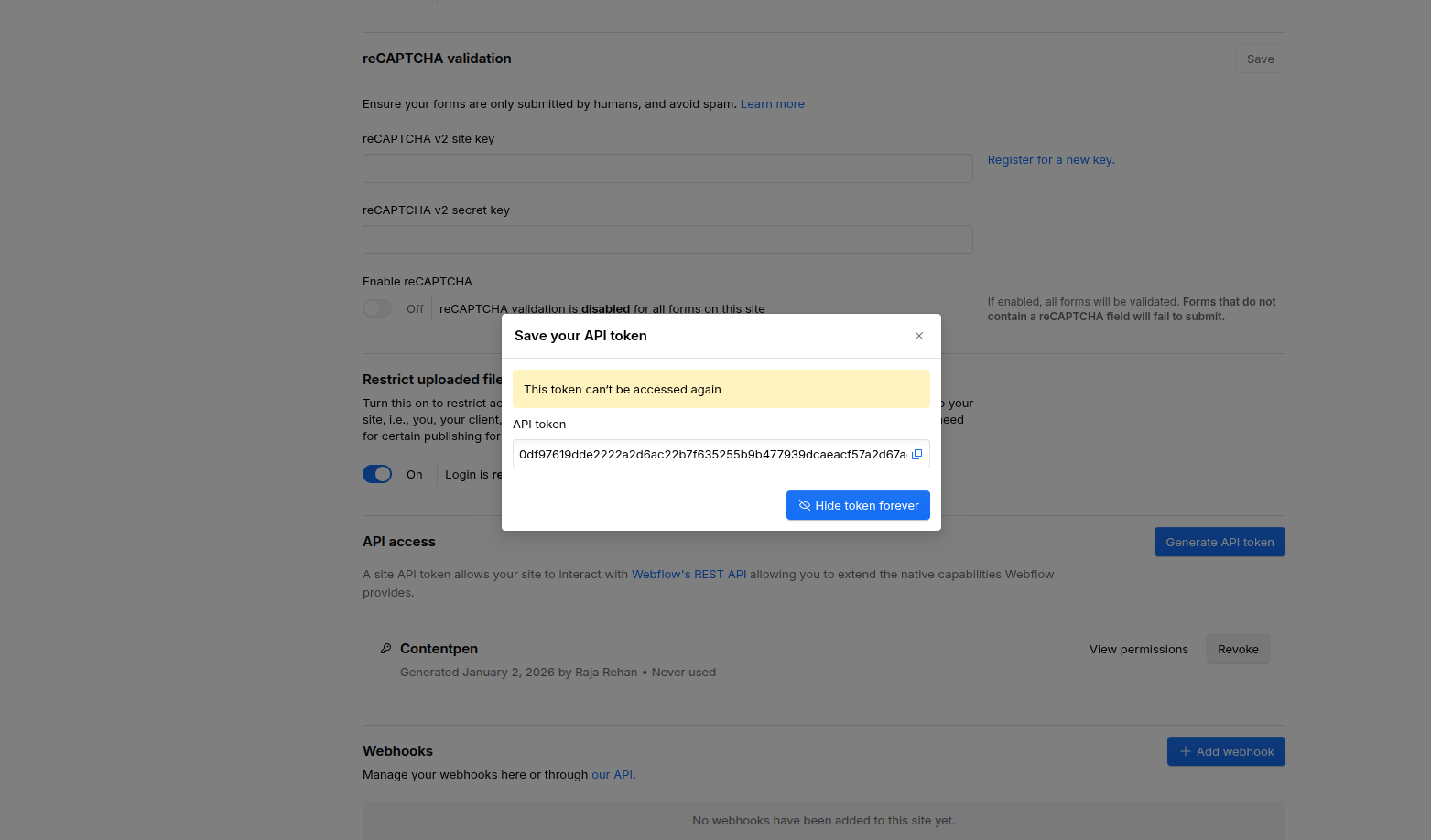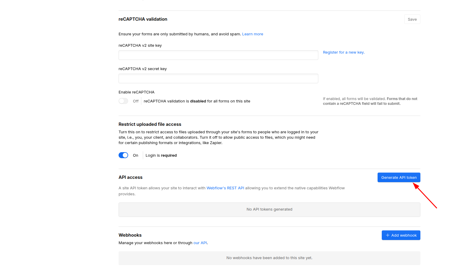 After that select your Webflow site from where we generated the API token and click Save Settings.