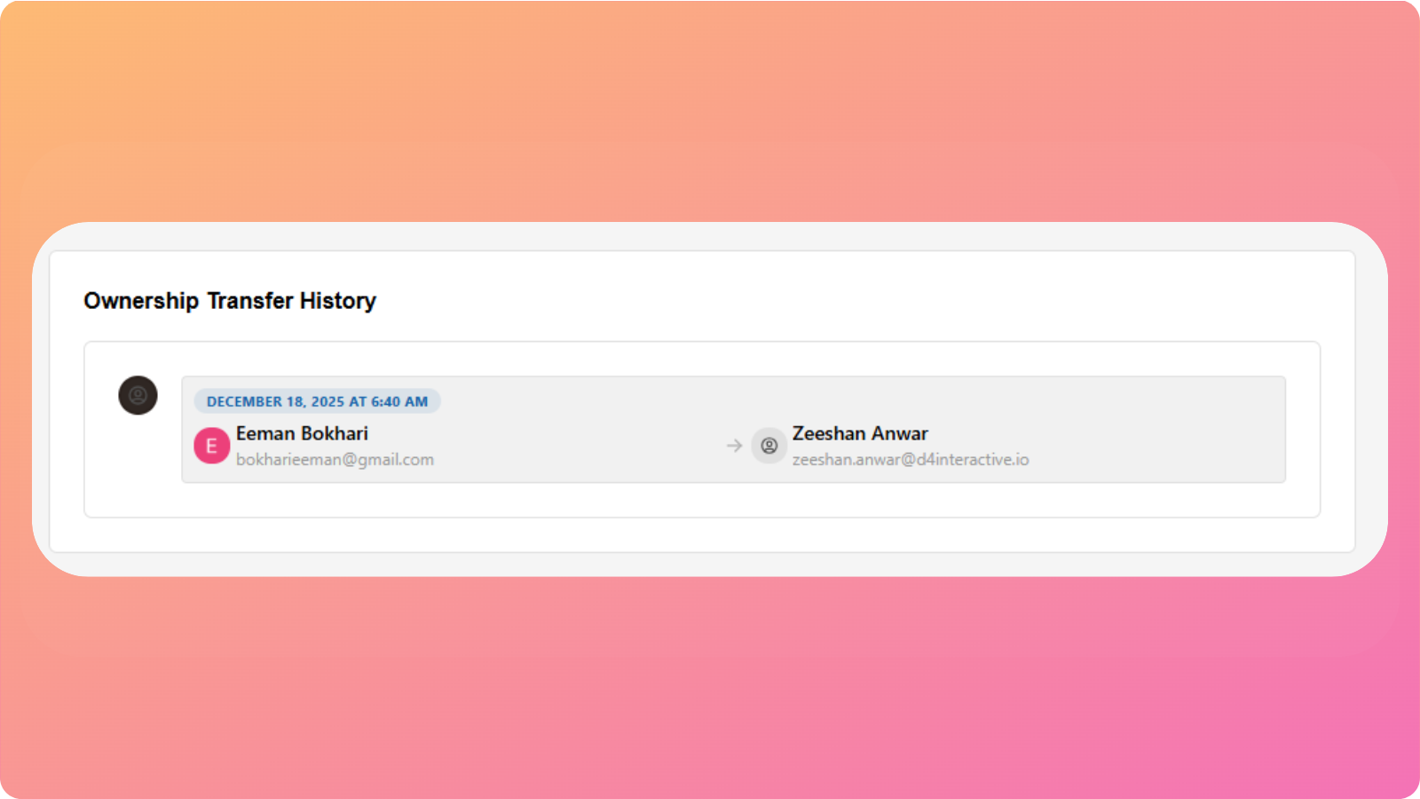 This helps you keep track of past ownership changes and maintain transparency across your team.