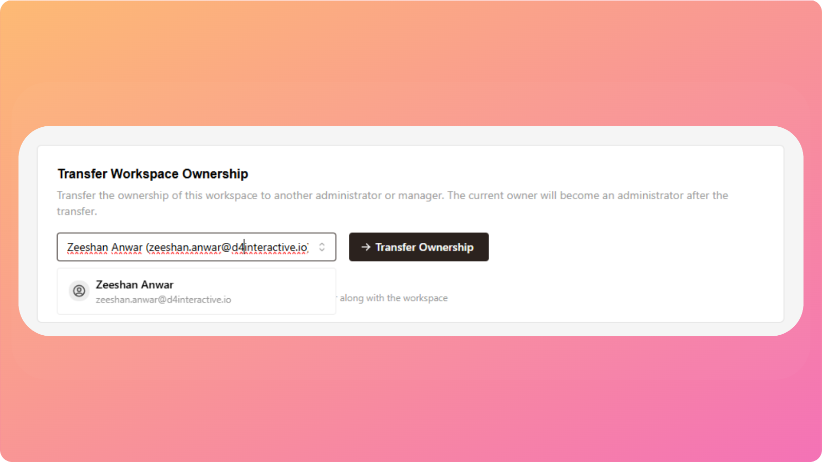 If you need help updating workspace settings or managing ownership, feel free to reach out to our support team, we’re happy to help.