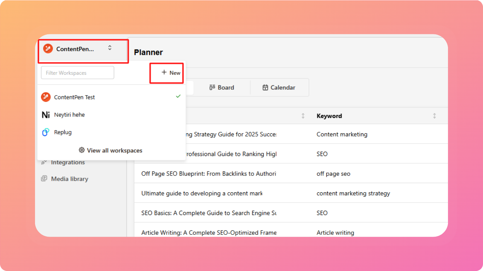 Your workspace is where Contentpen learns about your website, brand, and content goals. Each workspace is connected to one website, and you can create multiple workspaces if you manage more than one site.